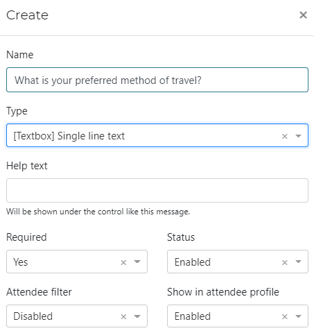 Custom attributes are a great way to gather information & data from your attendees, upon registration. An example of a custom attribute could be: