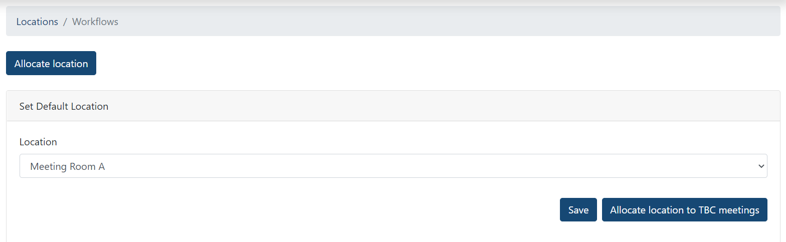 Tip: If meeting locations aren’t created, ‘Schedule location’ won’t be visible on the front end. Alternatively, you are able to manually update the locations of meetings that have been marked “To be confirmed” on the Locations tab.