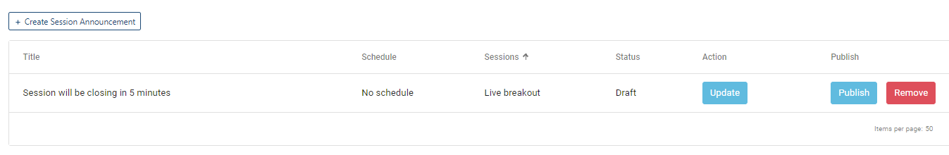 - Now that the announcement has now been created, it should appear within your list of session announcements.