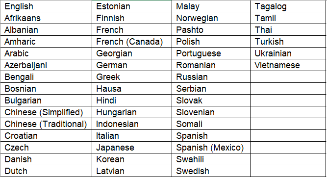 You are also able to edit the translations at the Translation tab and have the ability to export translations for a language. The CSV file should include English source, translated text, the URL the text is seen and if required unique identifier for the text.