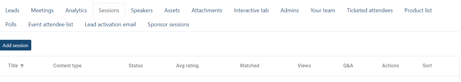 A new tab in the sponsor booth is called Sponsor sessions. At the top of that tab, there will be a blue “Create session” button, which your sponsor team can use to create their own sessions (the permissions for creating sessions can be updated per admin).