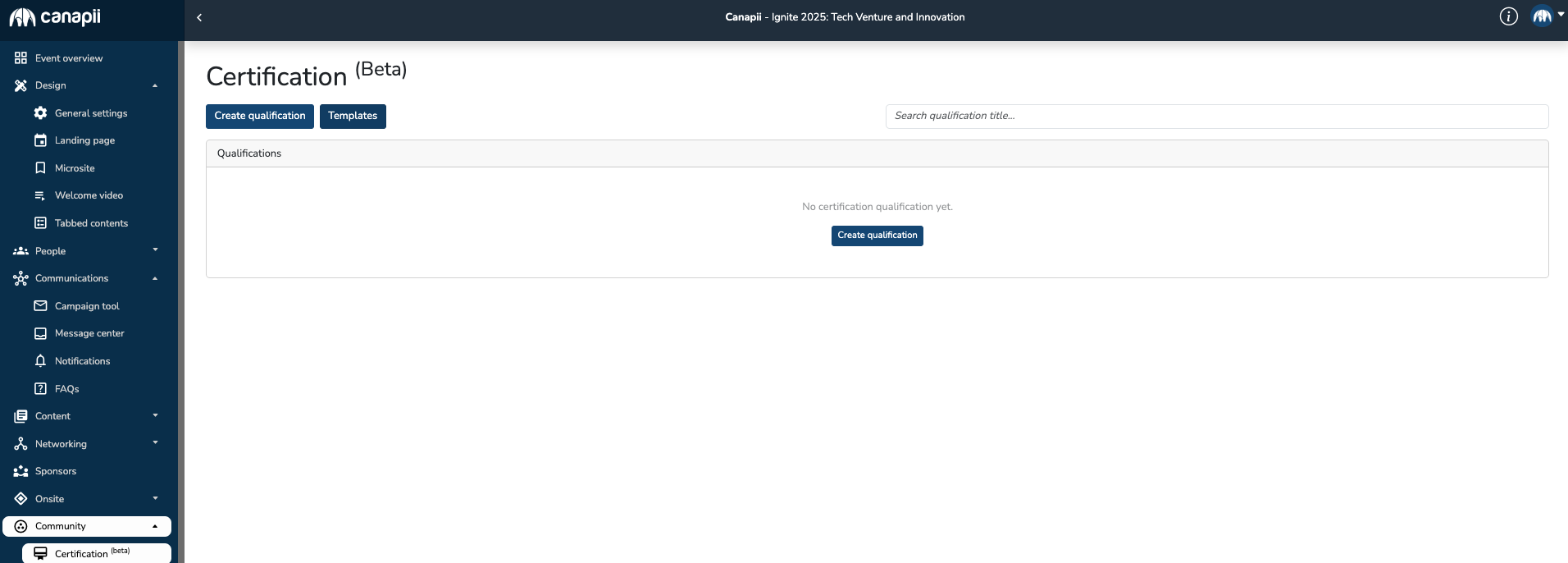 To create qualification, organizes can select the Create Qualification button, add the title and description, select the template, target attendees and choose award date: