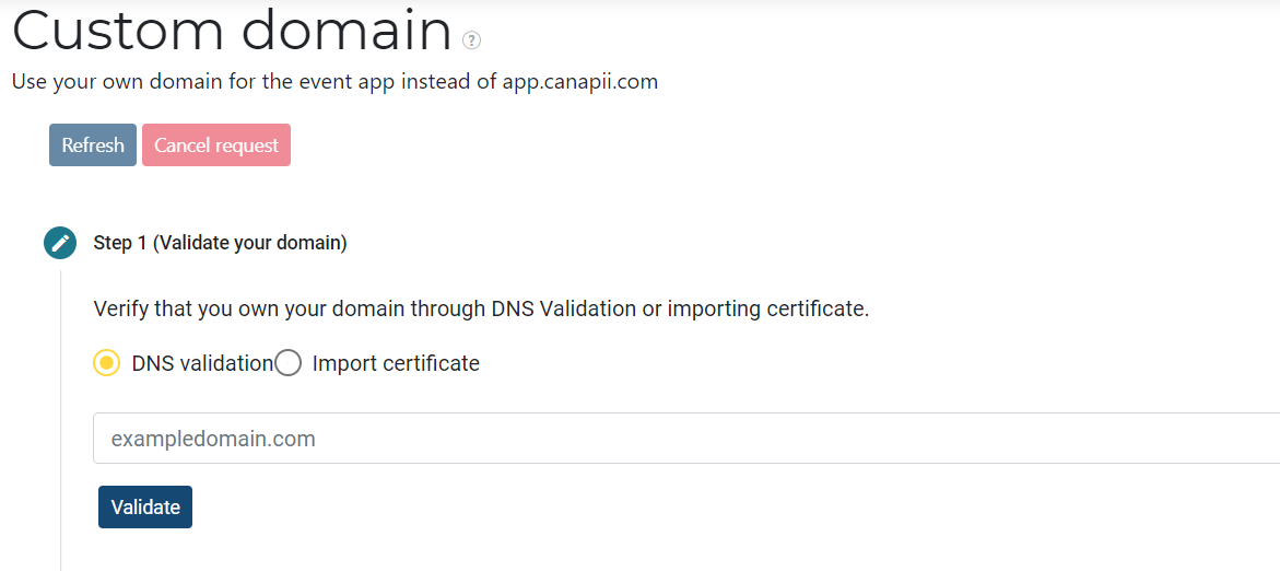 Note: Event owners are able to use the same domain for multiple events but would need the assistance of Canapii account managers to complete the setup.