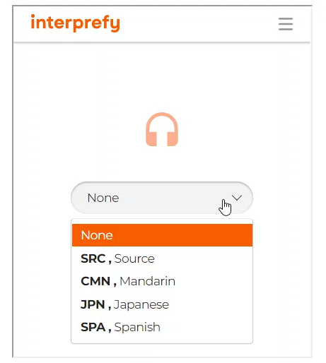 As an attendee finding Interprefy within a session, please ensure that they scroll down past the session details, until they find an Interprefy box with a drop down feature. Here they can select from a list of agreed upon languages & watch the session accordingly: