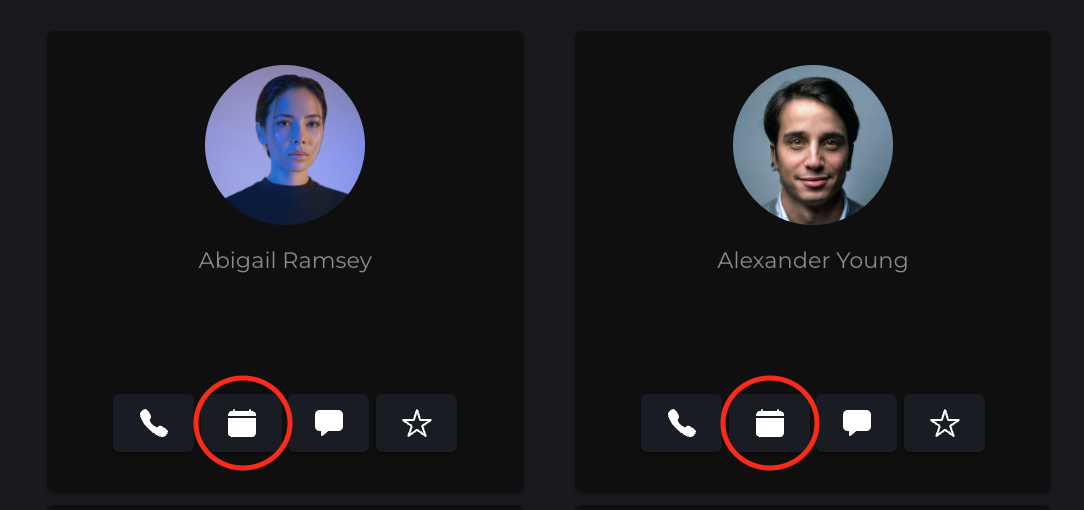 Request Meeting – the calendar icon takes you to a page where you can schedule time to meet, define the terms of your meeting, and add a personal note. The recipient will receive an email notification prompting them to accept your proposed meeting.