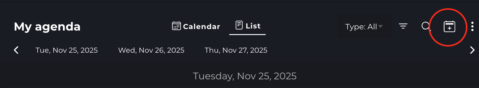 Alternatively, under My Agenda, you can request a meeting using the calendar button on the upper right corner.